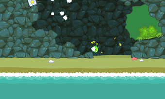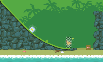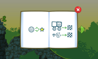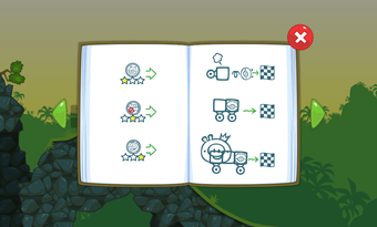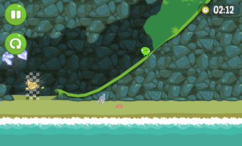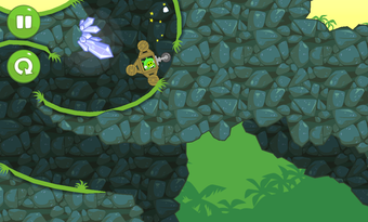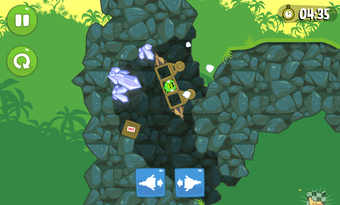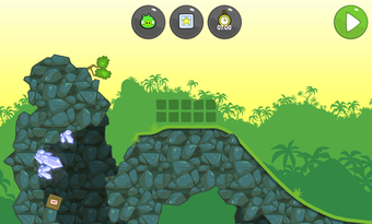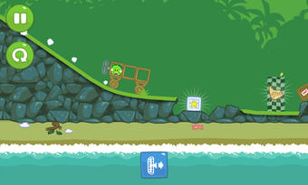 Nach der Bauphase schickt man die Maschine auf Reise durch die bunte Spielewelt von Bad Piggies. Über Rampen, Steine und Schluchten befördert man das Schweinchen bis zu dem Ziel. Propeller und Flügel steuert man während der Fahrt mit speziellen Schaltflächen.